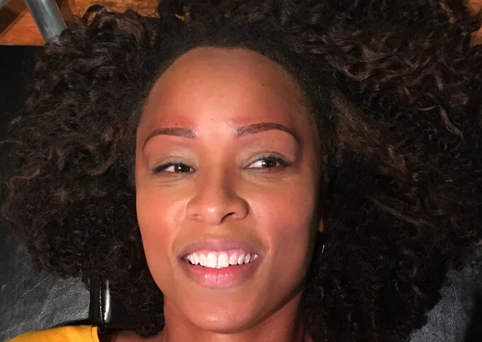 Step Three: Once Round 1 was done, we rested (and I needed it too). I was able to view the progress and adjustments could be made if needed. Despite the pain and after seeing how my new brows were starting to form, I was all smiles.